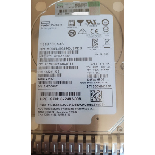 EG1800JEMDB 781515-001 Жесткий диск HP HDD 1.8TB 12G 10K 2.5" SAS 512e DS SC